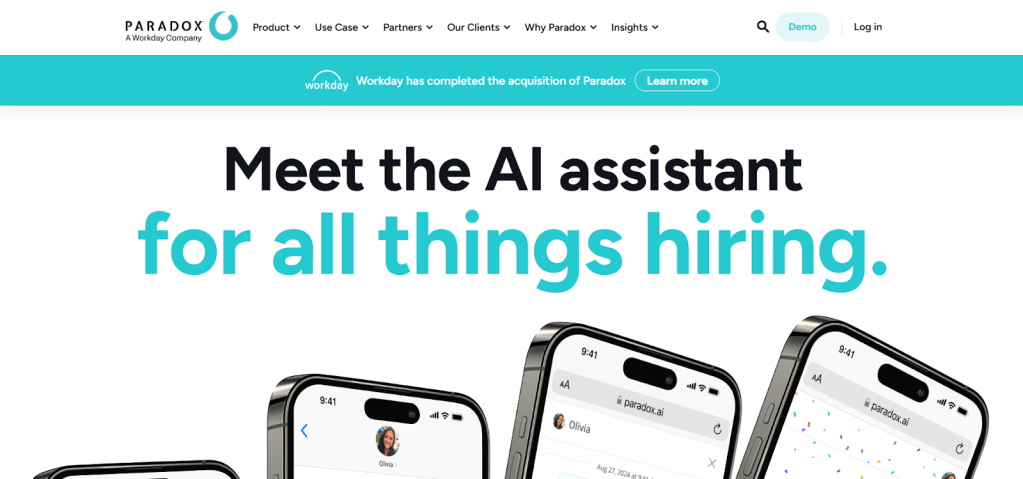 Paradox is an AI-driven recruiting platform built to automate high-volume hiring workflows. Its AI chatbot, Olivia, handles candidate screening, interview scheduling, and early-stage engagement across career sites, SMS, and WhatsApp.