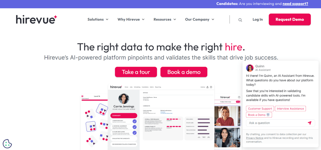 By combining intelligent interviewing, automated scheduling, and 24/7 candidate engagement, HireVue reduces screening time and improves hiring accuracy. It’s best suited for organizations hiring at scale and prioritizing structured, skills-based decisions.