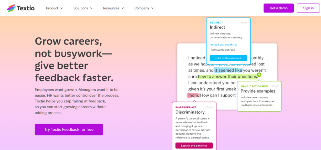 Textio is an AI-powered writing assistant built specifically for HR and talent teams. It analyzes job descriptions, feedback, and recruiting content in real time to improve clarity, tone, and inclusivity.
