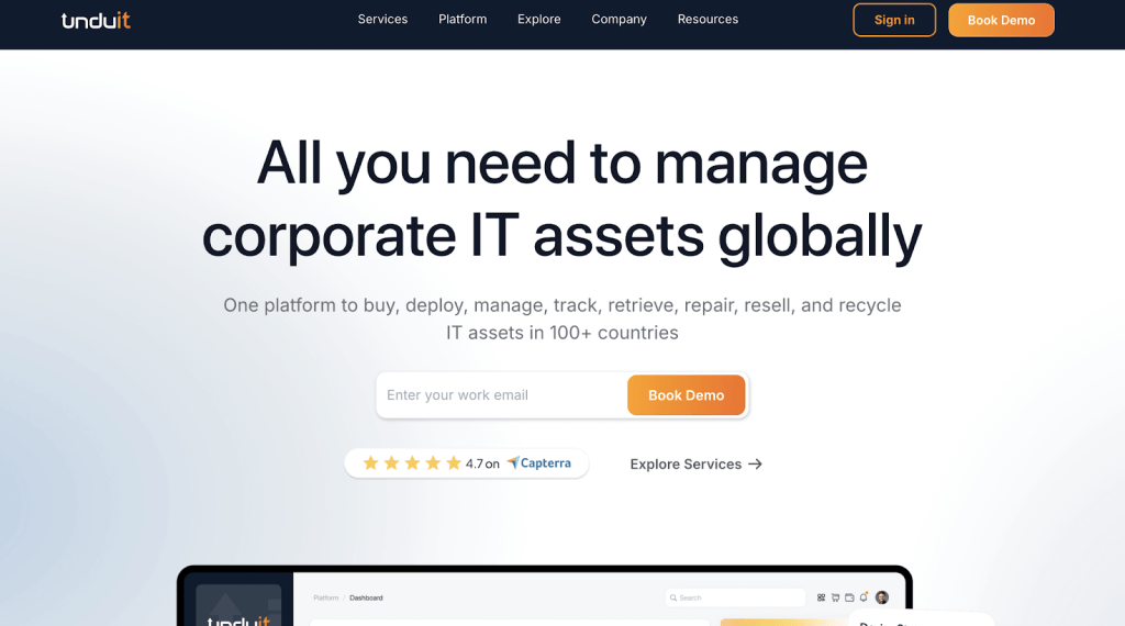 Unduit positions itself as a comprehensive global Growrk alternative, offering IT asset management services across 100+ countries with full lifecycle support. This US-based platform serves as a direct Growrk alternative for organizations requiring extensive international coverage across healthcare, education, manufacturing, and financial services sectors.
