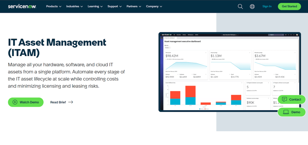 ServiceNow is a leading enterprise IT asset management platform that centralizes hardware, software, and cloud assets into a single system of action. Built on the ServiceNow AI Platform, it automates every stage of the IT asset lifecycle at scale while reducing costs and minimizing risks.