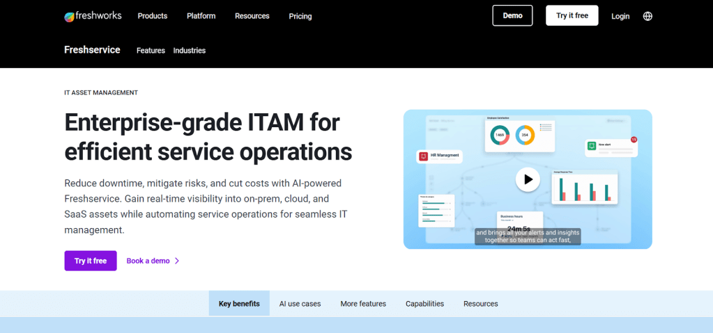 Freshservice is an enterprise-grade IT asset management platform that combines ITAM with service operations, powered by AI. It gives organizations real-time visibility into hardware, software, SaaS, and cloud assets while automating workflows across the IT lifecycle.