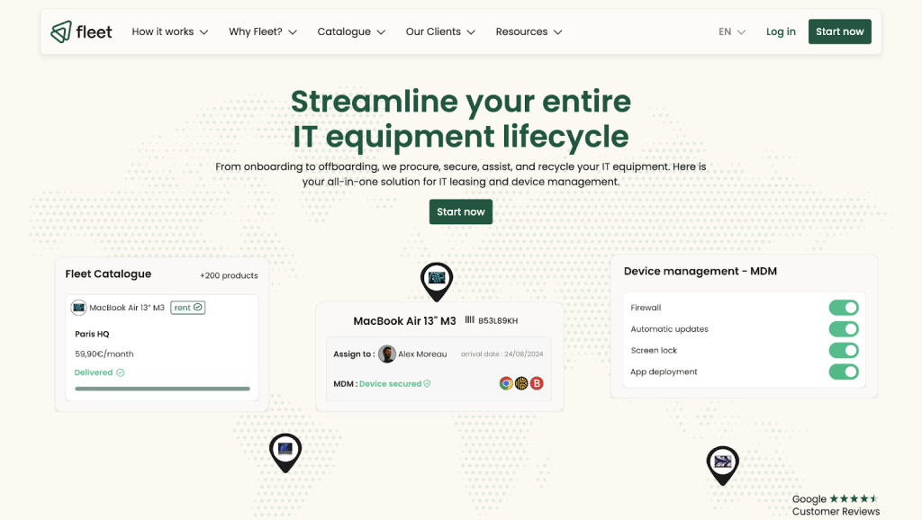 Fleet is a global IT asset lifecycle management platform that allows businesses to lease, manage, and secure devices across borders. Through its Cockpit platform, companies can access over 200 products, track assets in real time, and enforce security policies with built-in MDM.