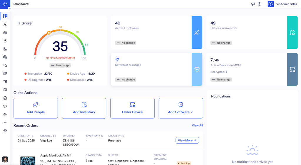 Through its integrated logistics partners, ZenAdmin ships and manages devices for employees in multiple countries. Whether it’s onboarding a hire in London or recovering a laptop from a departing employee in Singapore, the logistics are handled through one connected platform.