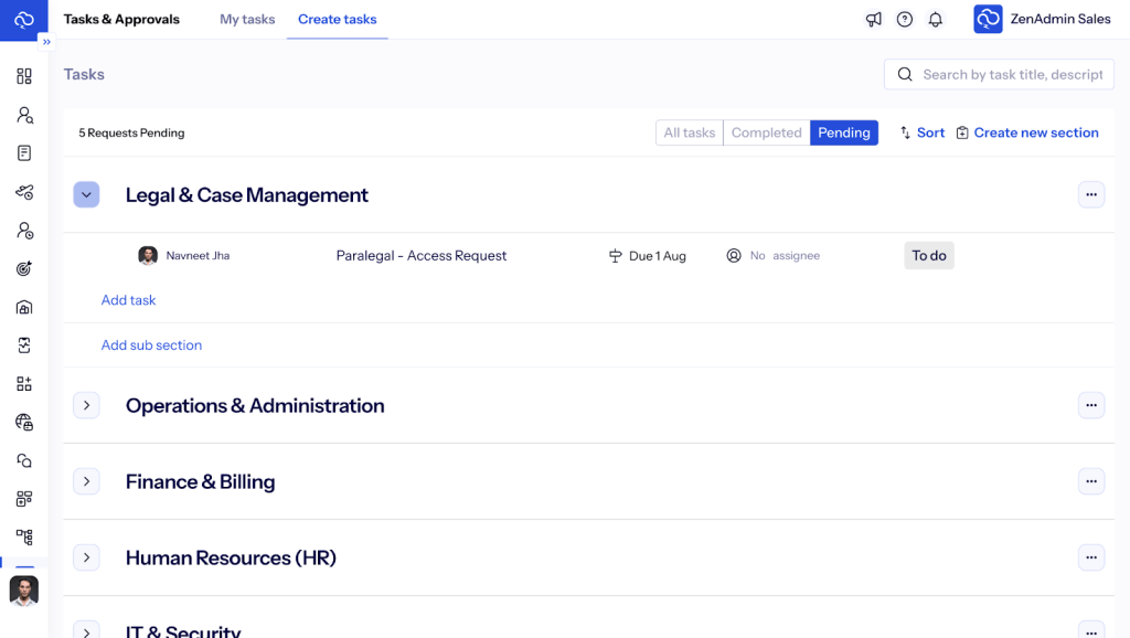 For example, with ZenAdmin, you can build a zero-trust architecture for your law firm, which every employee has access limited to the things that they need. And then smoothen out the process to ensure that whenever they need access to something new, it can audited and approved quickly.