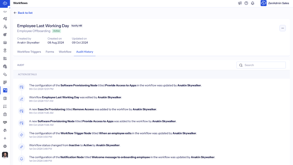 With ZenAdmin, you can create templates and automated workflows for onboarding and offboarding. And then when someone joins, add their details and the automation will be trigged to give them all the access and devices required to begin their day 1 and same goes for offboarding too, which triggers the IT asset retrieval with best practices.
