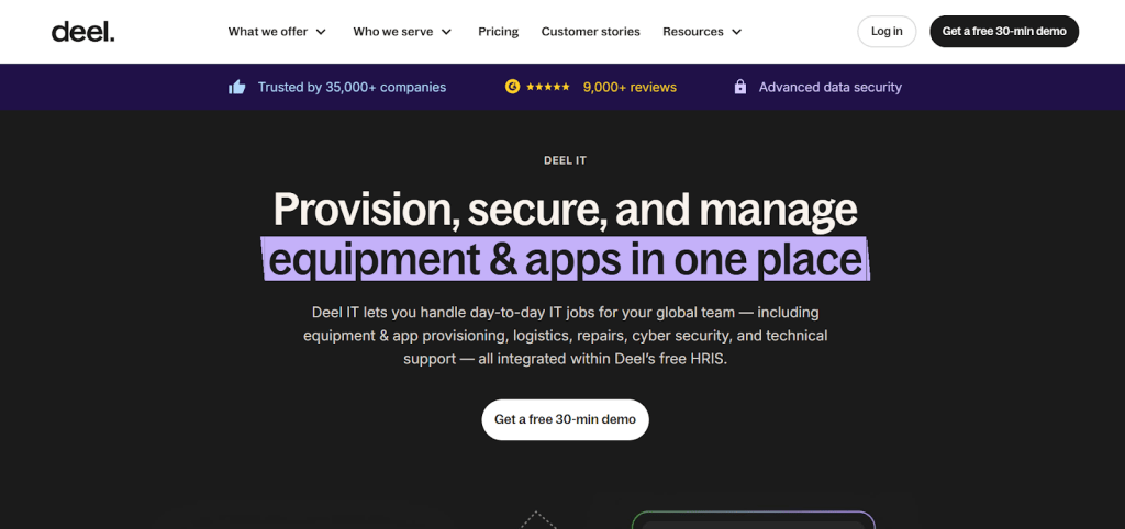 Formerly Hofy, Deel IT is built for organizations managing IT assets across global workforces. It automates device procurement, delivery, tracking, and retrieval while maintaining compliance with data security standards. With operations in 130+ countries, it takes the heavy lifting out of international IT logistics.